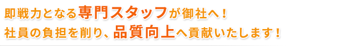 スタッフは、派遣先である御社の指示のもと業務を遂行いたします。給料の支払いを含め、各種フォロー体制を徹底しておりますので、お客様にご負担をおかけすることなく、質の高い業務を効率的にこなすことができます。